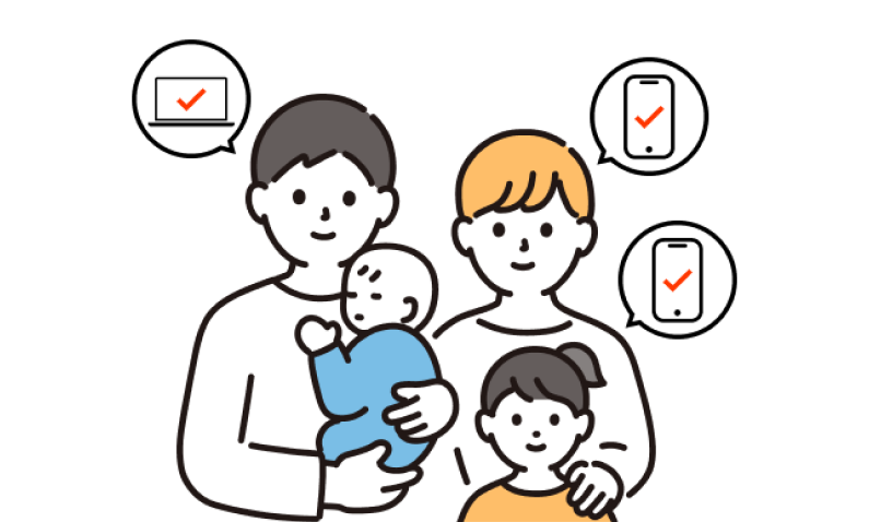 1つのアカウントで5端末までご利用いただけますので、ご家族みんなでご利用いただけます。